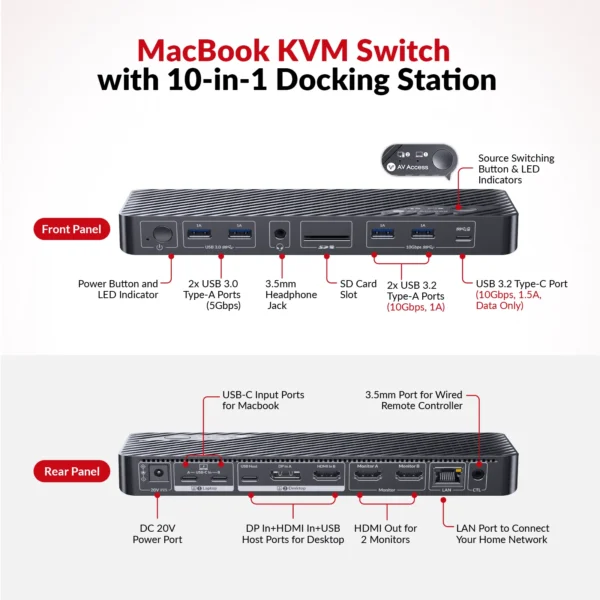iDock M10 KVM Switch Docking Station for MacBook and PC, Dual 4K HDMI Displays, 1 Laptop + 1 Desktop Switching, High Refresh Rates, 100W Charging, 10-in-1 USB-C DockiDock M10 KVM Switch Docking Station for MacBook and PC, Dual 4K HDMI Displays, 1 Laptop + 1 Desktop Switching, High Refresh Rates, 100W Charging, 10-in-1 USB-C Dock